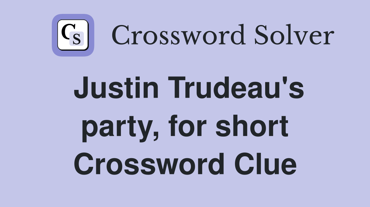 Justin Trudeau #39 s party for short Crossword Clue Answers Crossword