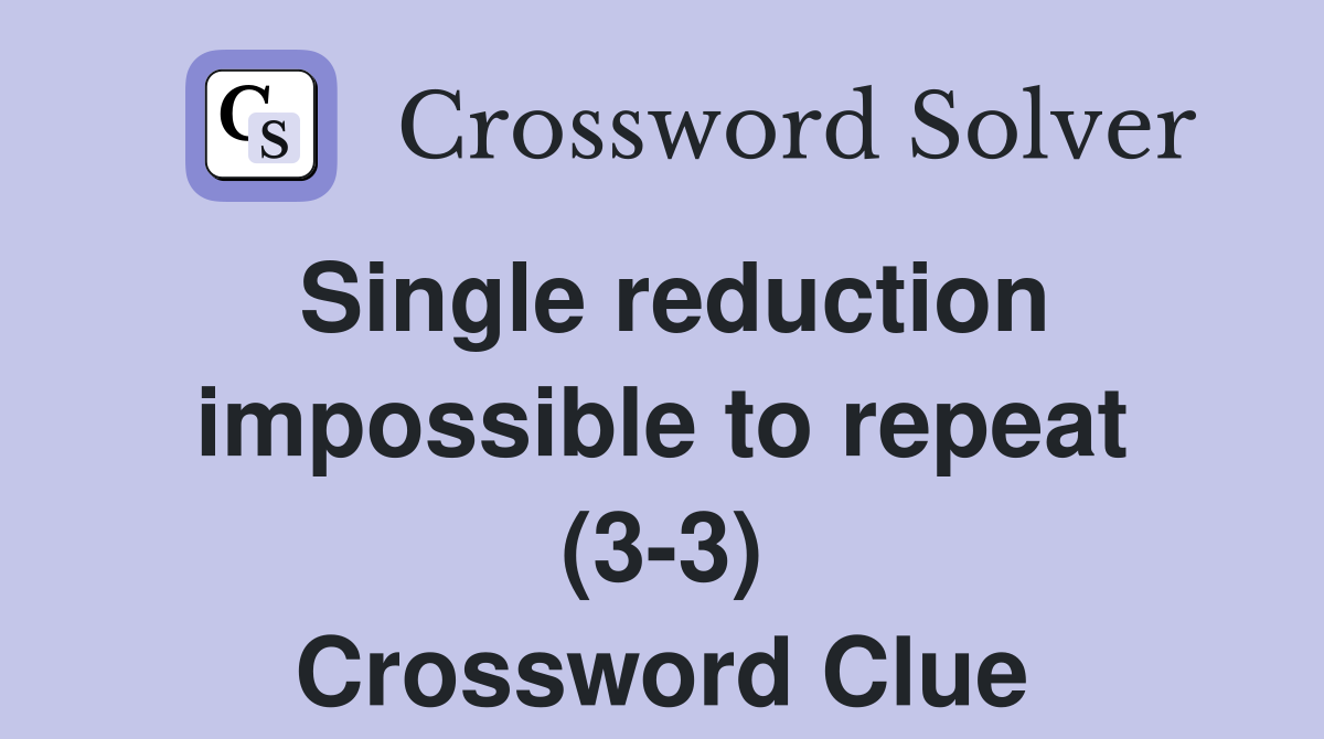 Single reduction impossible to repeat (3 3) Crossword Clue Answers