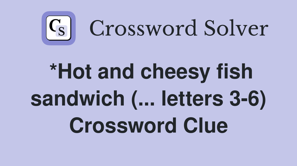 *Hot and cheesy fish sandwich ( letters 3 6) Crossword Clue