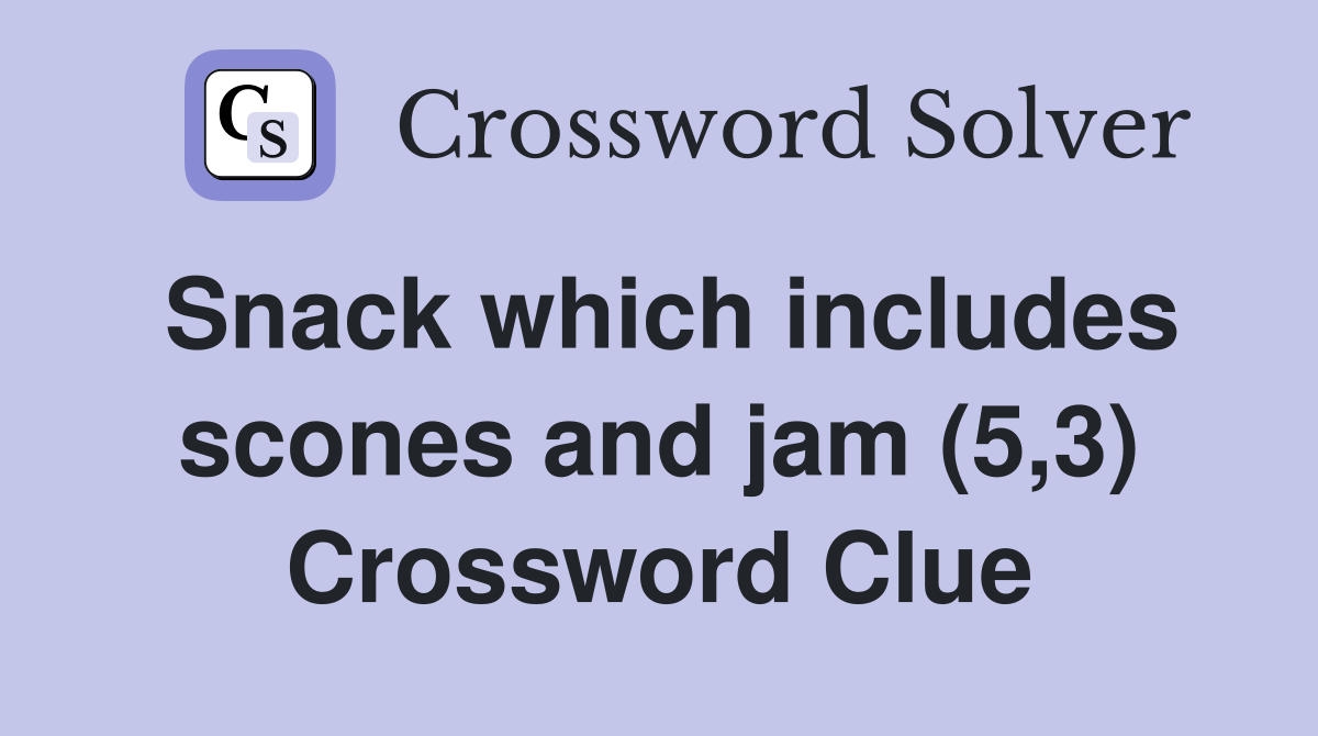 Snack which includes scones and jam (5 3) Crossword Clue Answers