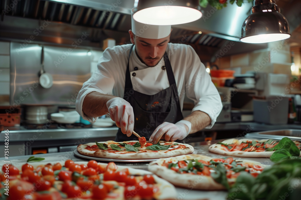 Premium Photo In Restaurant Professional male Chef Preparing Pizza