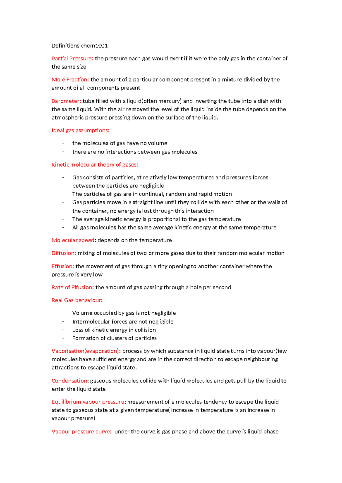 Definitions chem1001 Definitions chem Partial Pressure: the pressure
