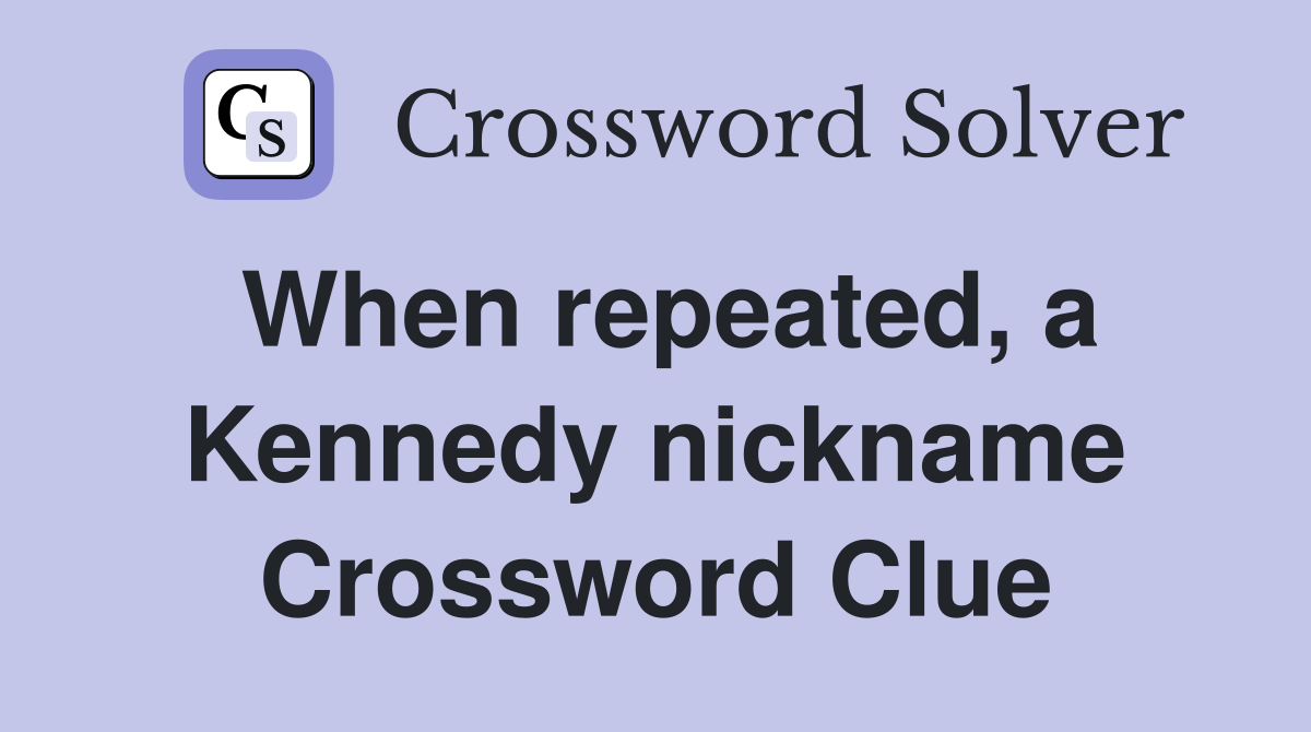 When repeated a Kennedy nickname Crossword Clue Answers Crossword