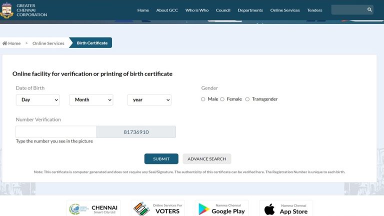 Chennai Corporation Birth Certificate Online How to Apply Download