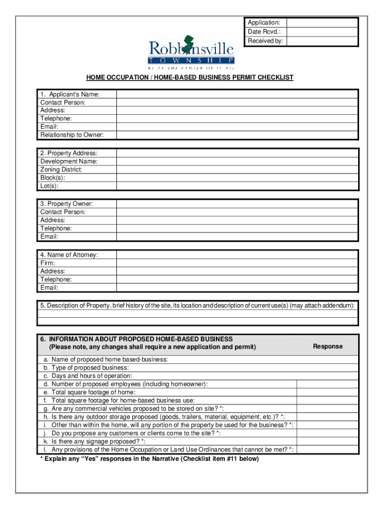 Fillable Home Occupation Certificate Of Use Application Form Zoning