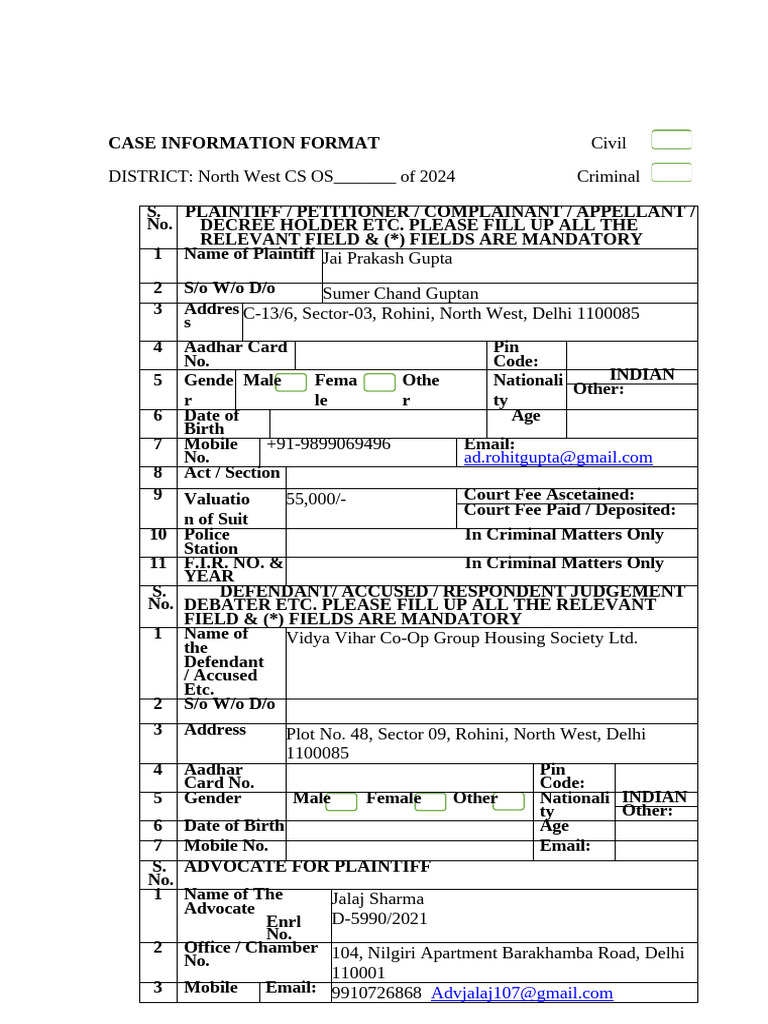 Case Information Format PDF