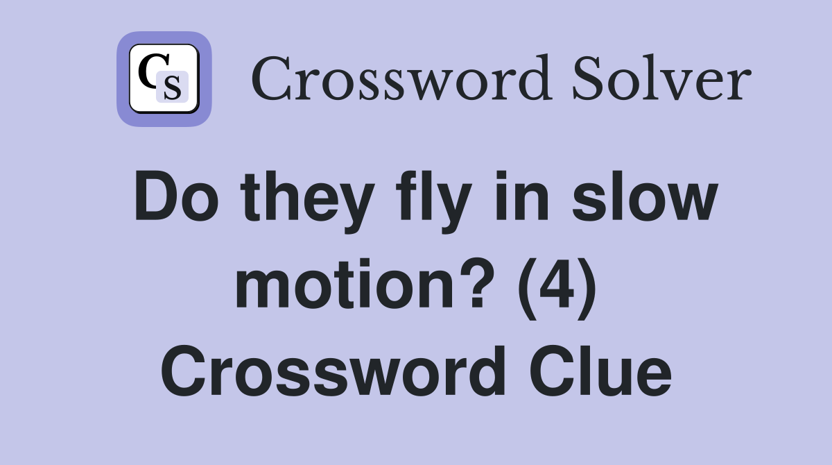 Do they fly in slow motion? (4) Crossword Clue Answers Crossword Solver