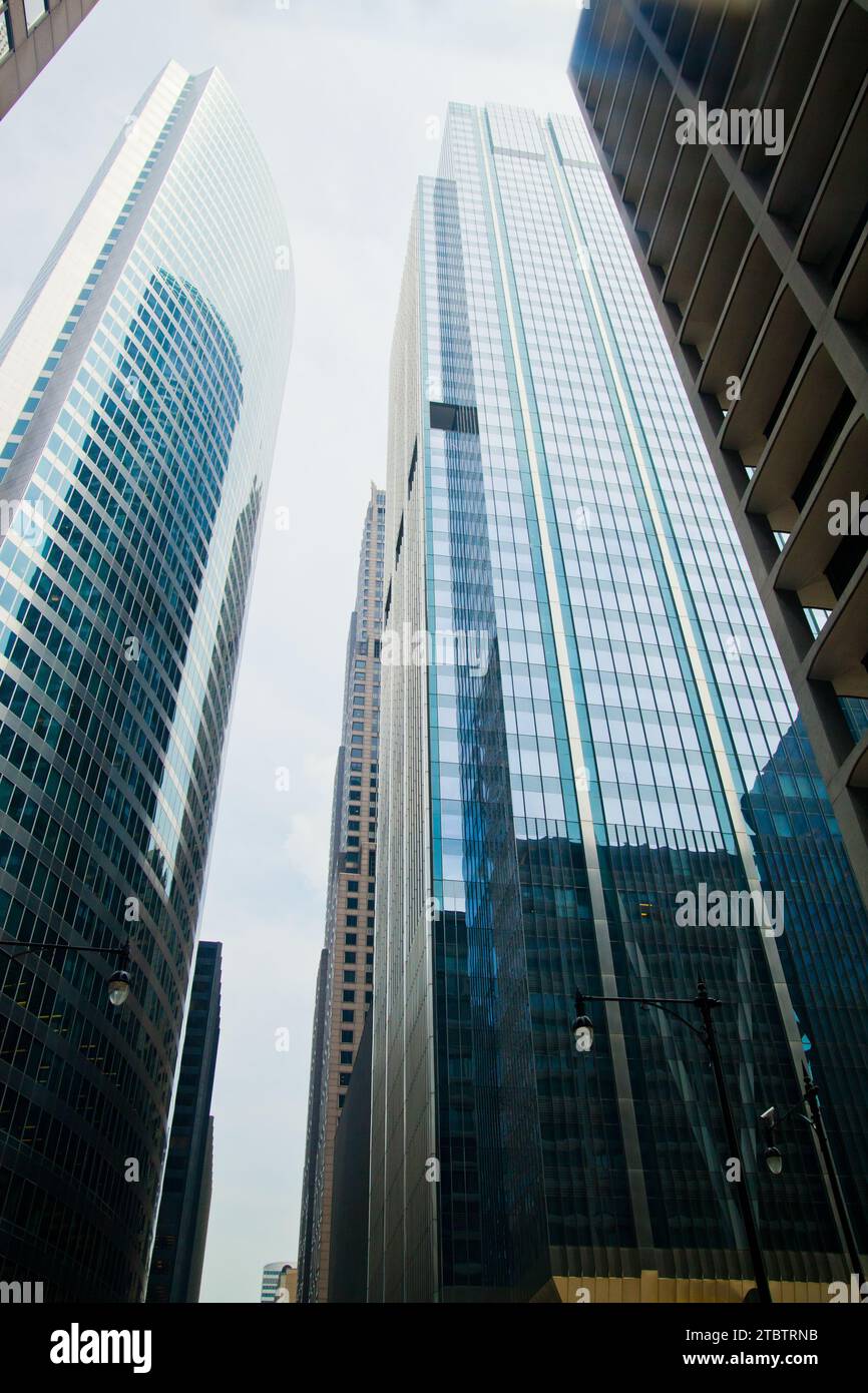 Upward View of Reflective Skyscrapers in Chicagos Business District