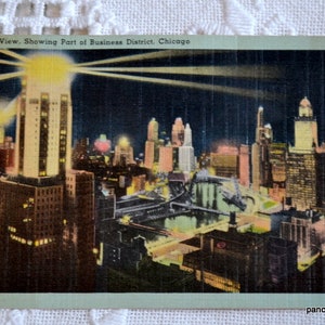 Vintage CHICAGO Post Card Business District View Night Illinois