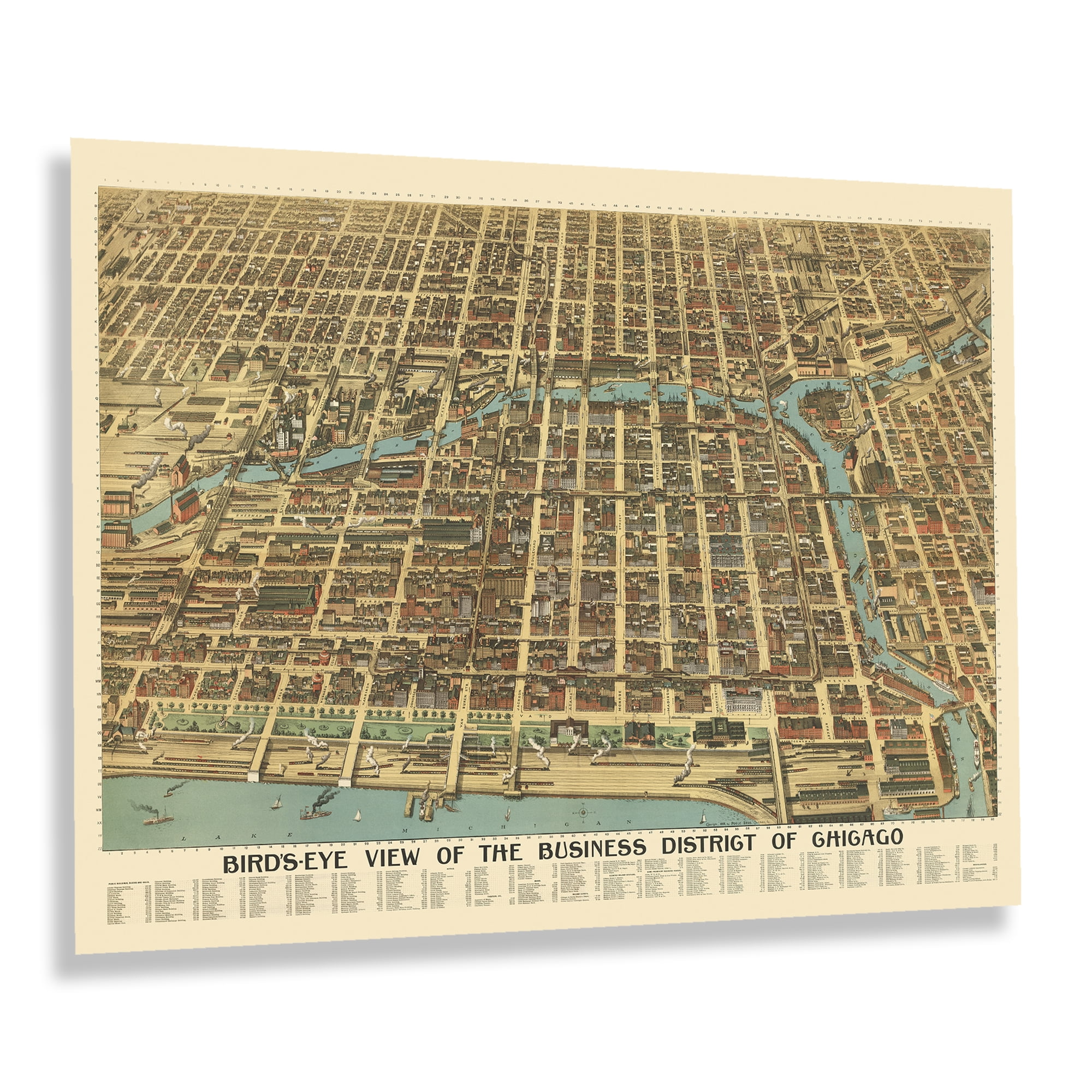 HISTORIX Vintage 1898 Chicago Business District Map Print Bird #39 s Eye