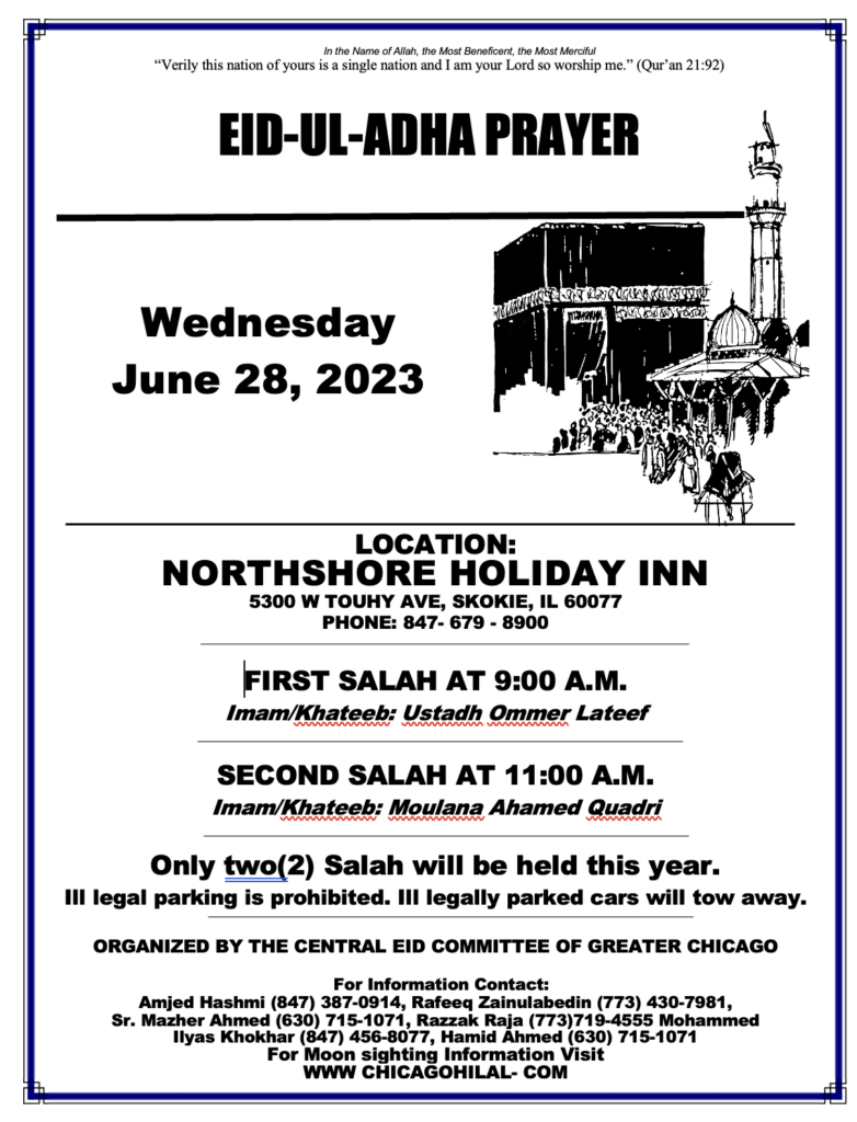 Eid ul Adha Prayer 1445 (2024) Chicago Hilal