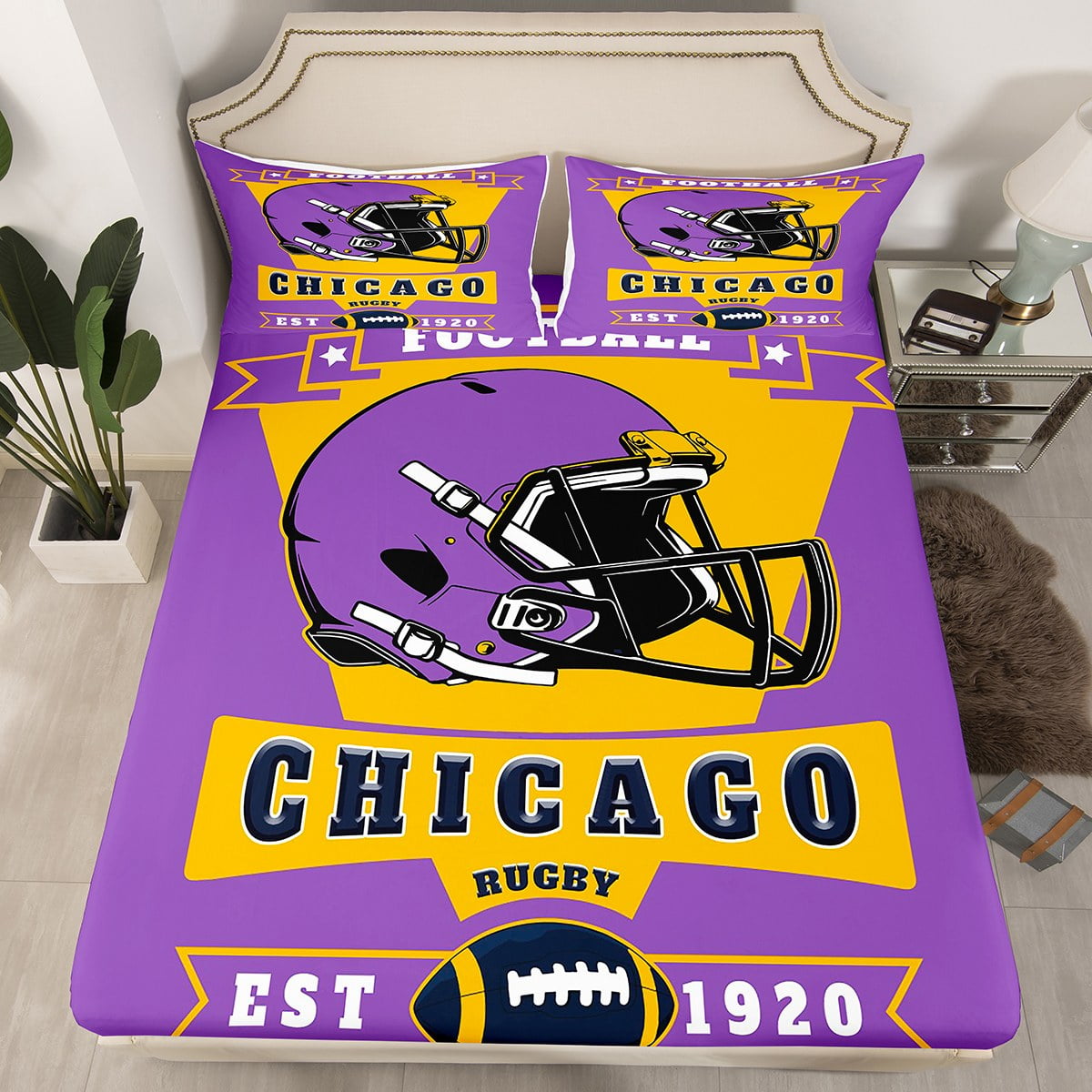 Erosebridal American Football Fitted Sheet Set Queen for Boys Girls