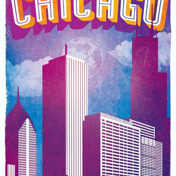 Purple Chicago Skyline at Night Panorama Photo Chicago at night
