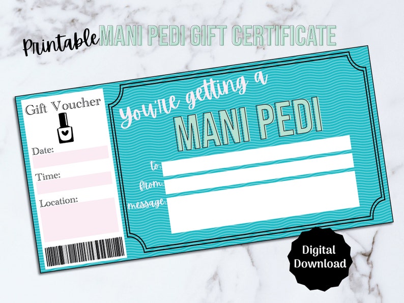 Printable Mani Pedi Gift Certificate Voucher Nail Salon Gift Etsy