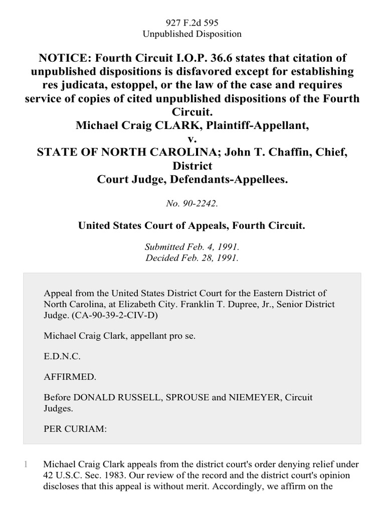 Michael Craig Clark v State of North Carolina John T Chaffin Chief