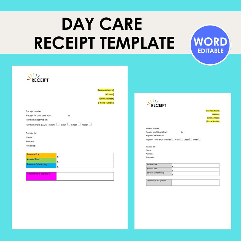 Child Care Receipt Template