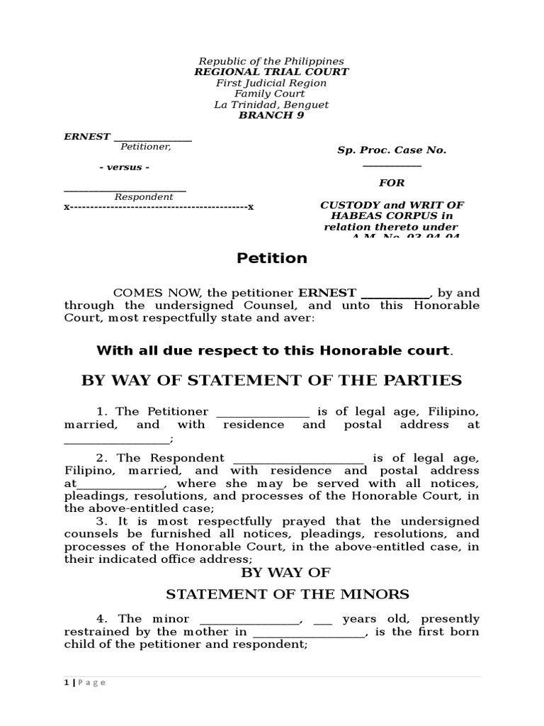Petition For Custody PDF Contempt Of Court Complaint