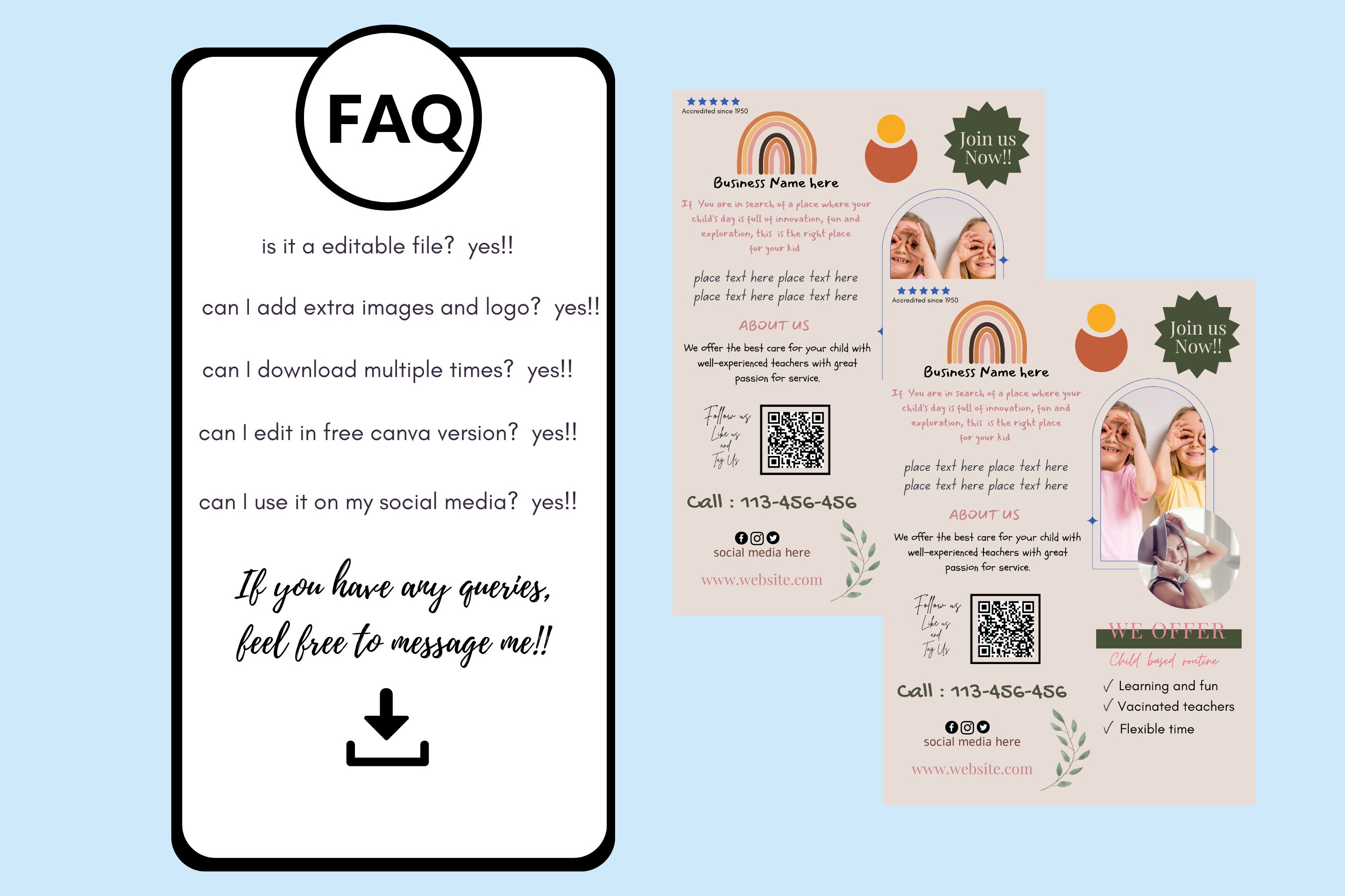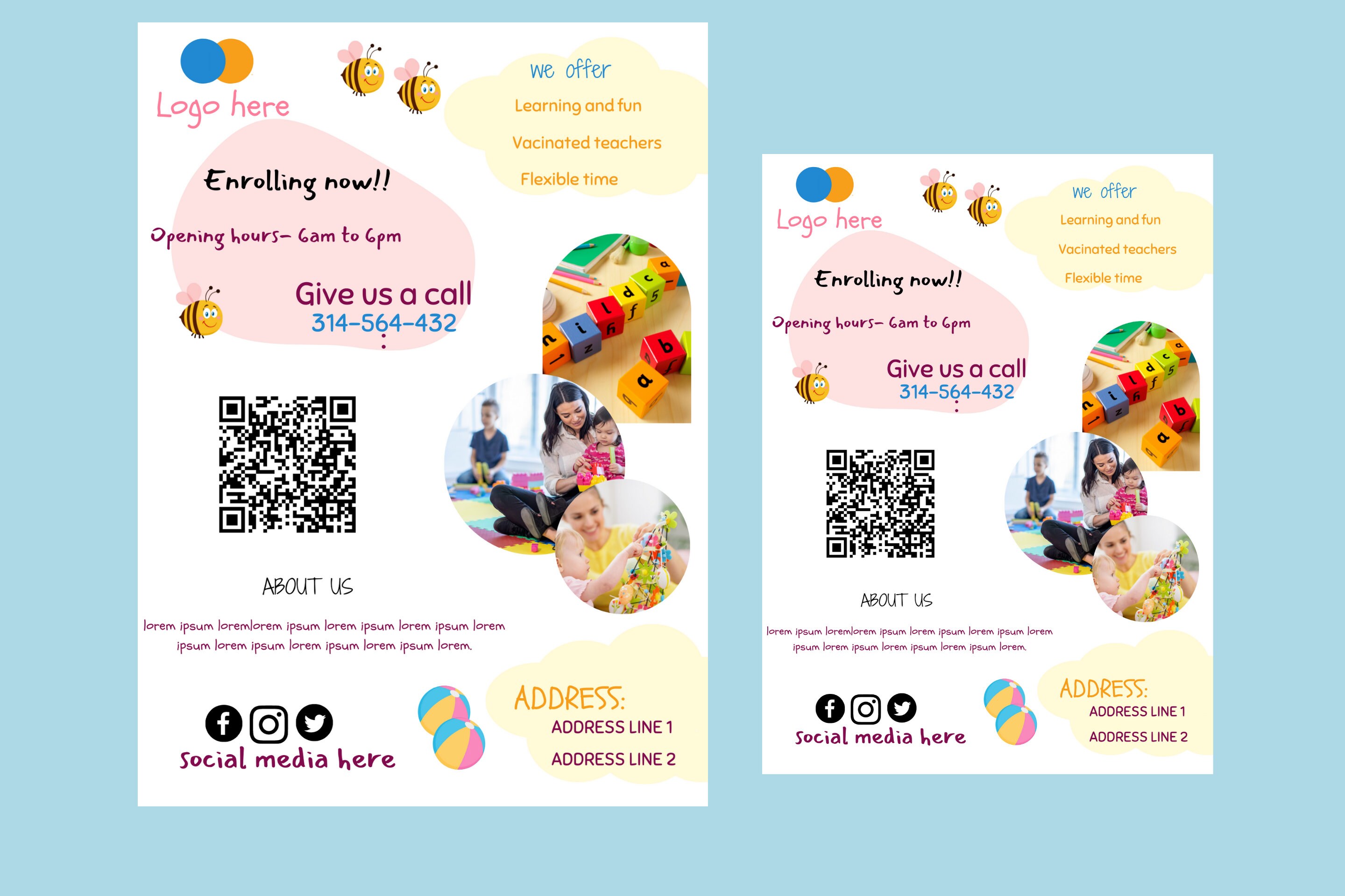 Teacher Flyer Childcare Flyer Template QR Code Daycare Flyer A4 Size