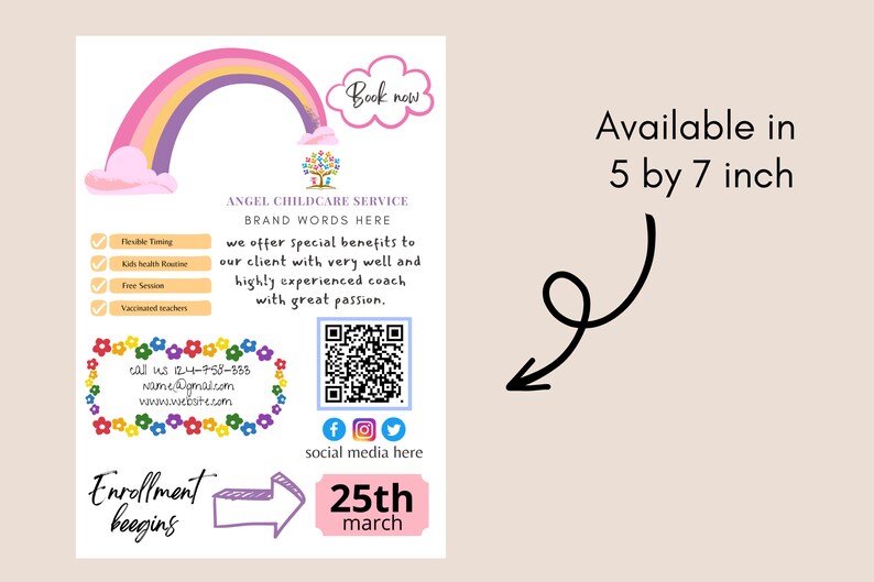Childcare flyer template qr code daycare flyer a4 size etsy Artofit