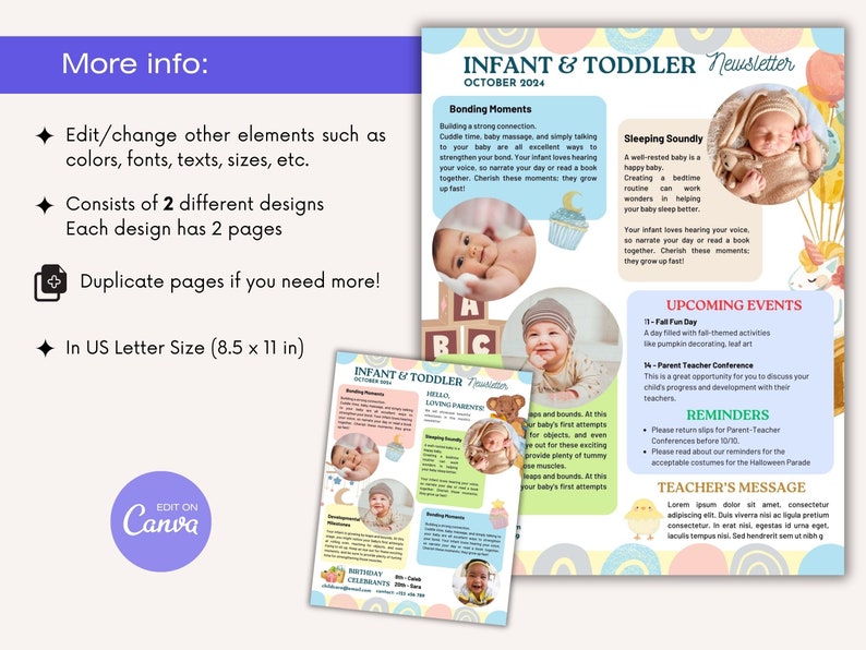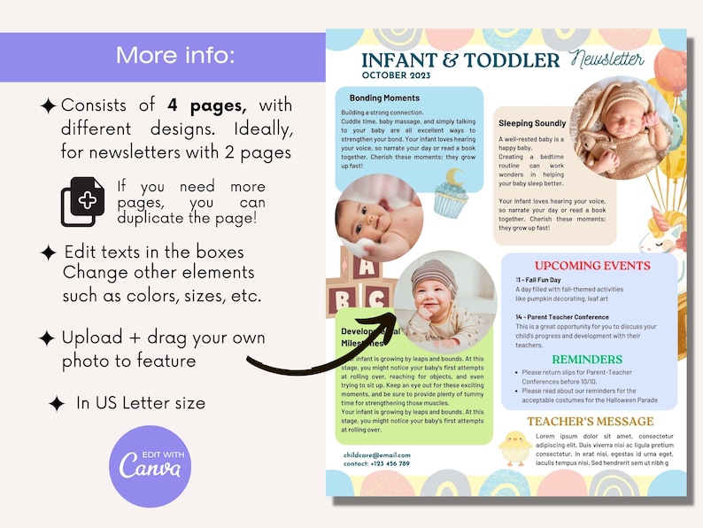 Preschool Monthly Newsletter Canva Template Editable Daycare