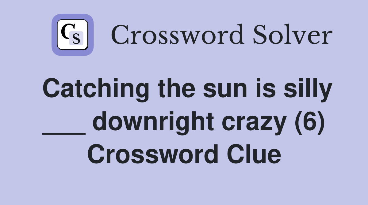 Catching the sun is silly downright crazy (6) Crossword Clue