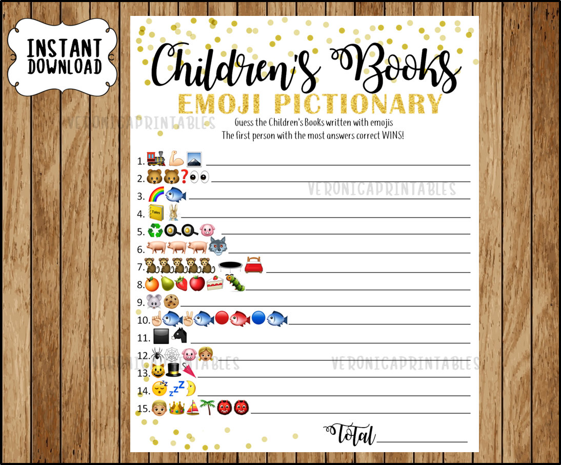 Children s Book Emoji Pictionary Printable Gold Baby Shower Game Gold
