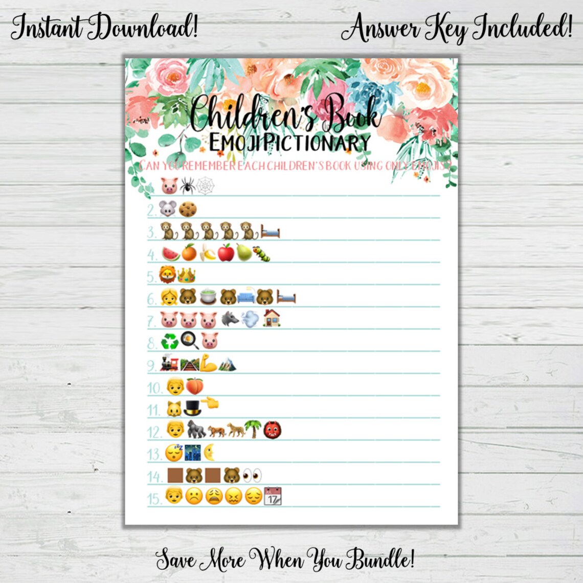 Children s Book Emoji Pictionary Game Mint Peach Floral Baby Shower