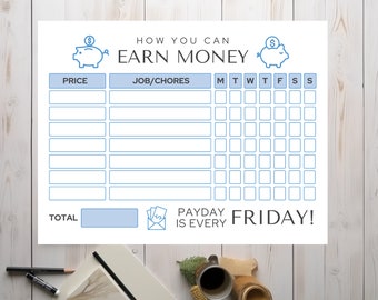 Blue Kids How to Earn Money Chart Printable Childrens Chore Chart Kids