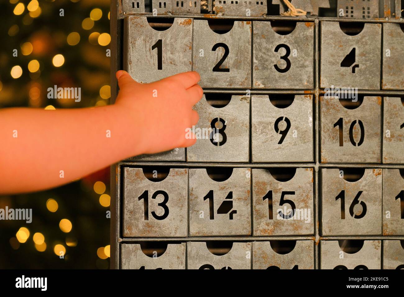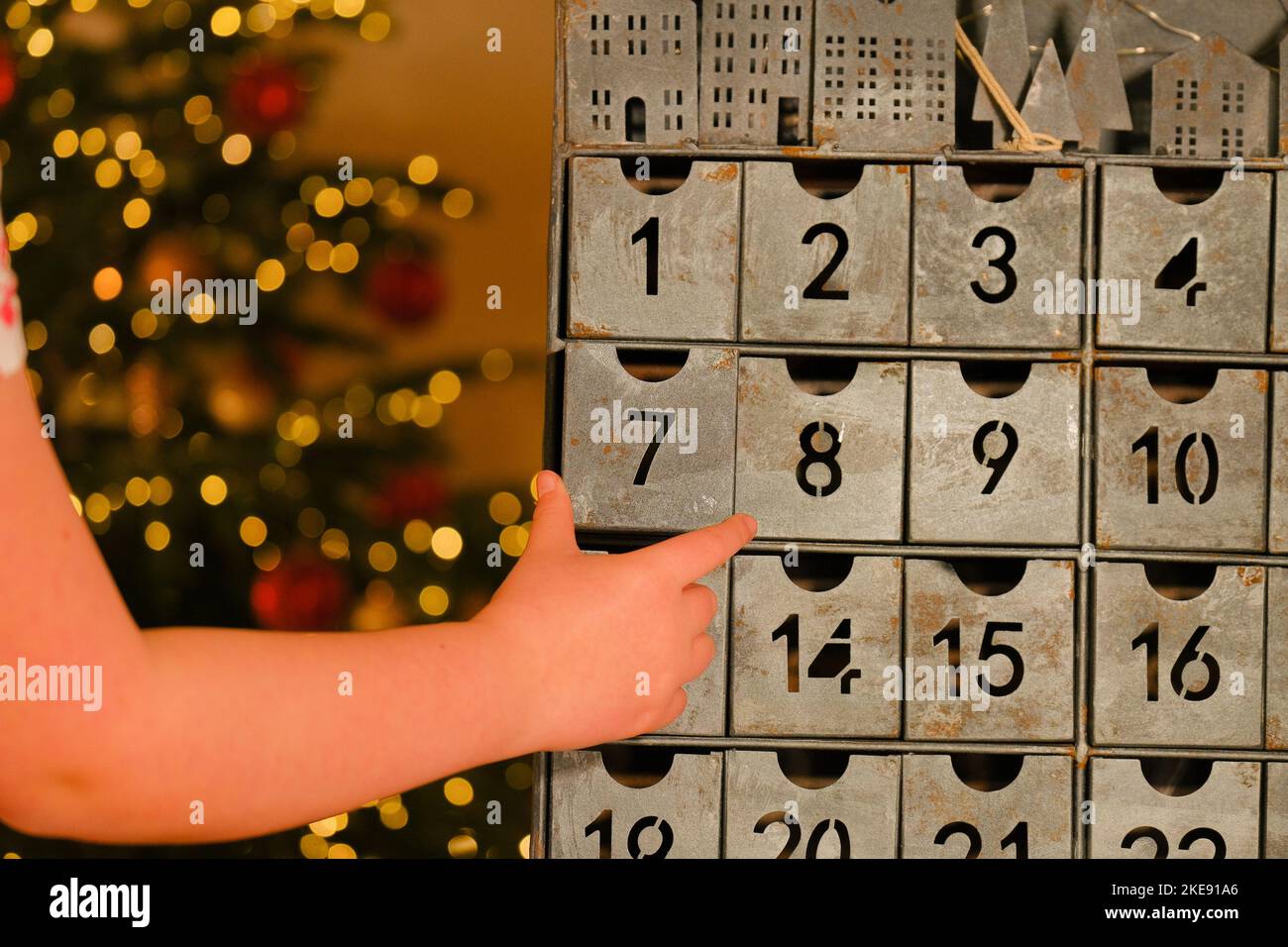 Metallic Advent Calendar in Vintage Style and Childs Hand Near
