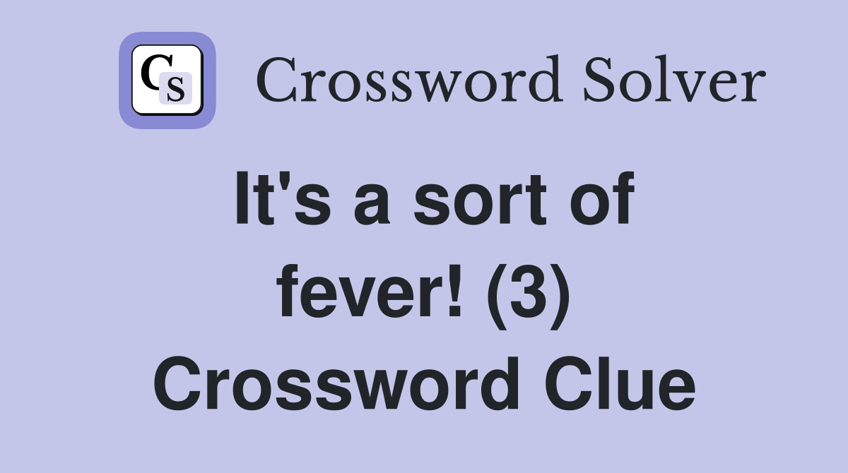 It s a sort of fever (3) Crossword Clue Answers Crossword Solver