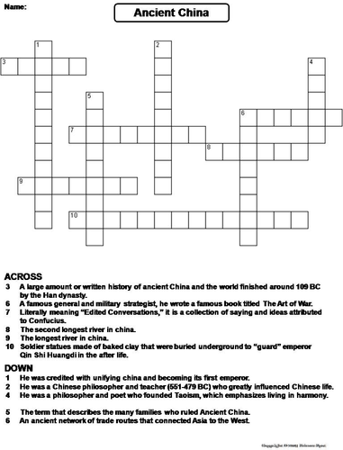 Ancient China Crossword Puzzle by ScienceSpot Teaching Resources Tes