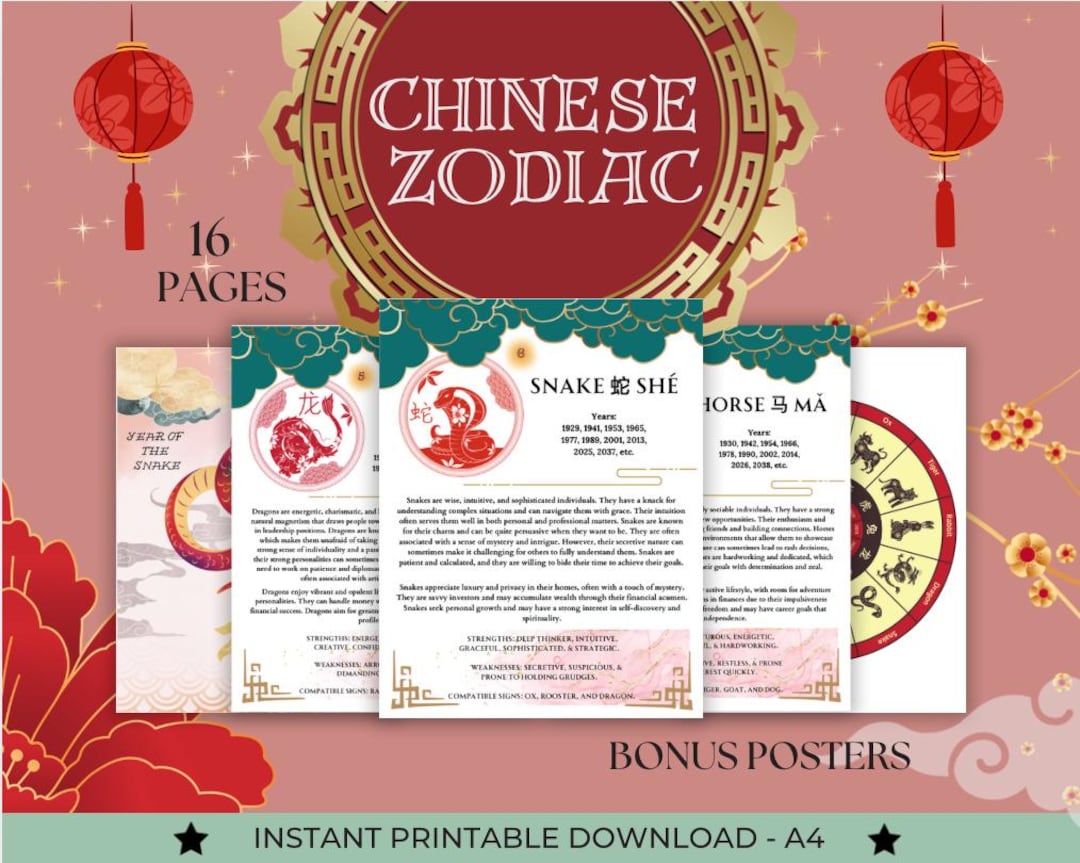 Chinese Zodiac Calendar 12 Signs Booklet YEAR of THE SNAKE Bonus