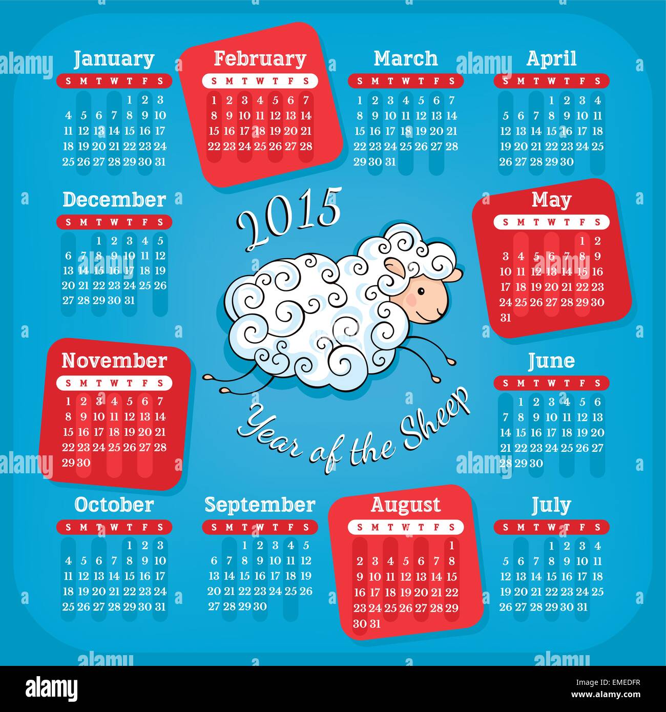 Year of the sheep 2015 calendar Stock Vector Image Art Alamy