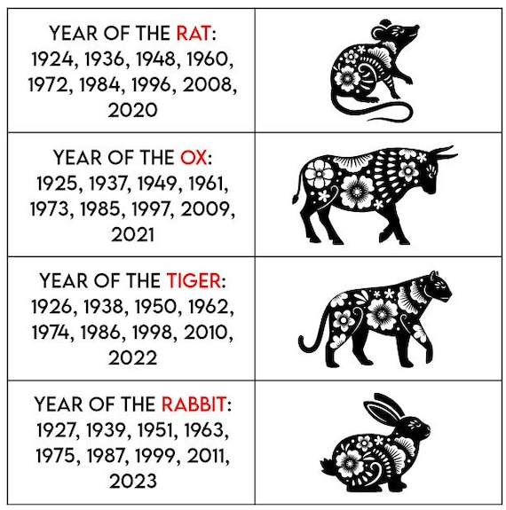 Asian Oriental Chinese Zodiac Poster Year of the Tiger: Birth Years