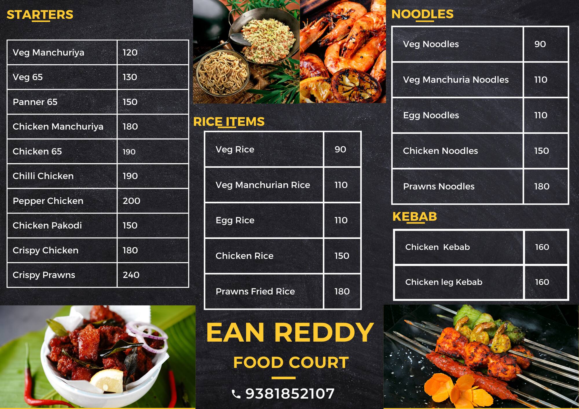 Menu of Ean Reddy Food Court ECIL Secunderabad