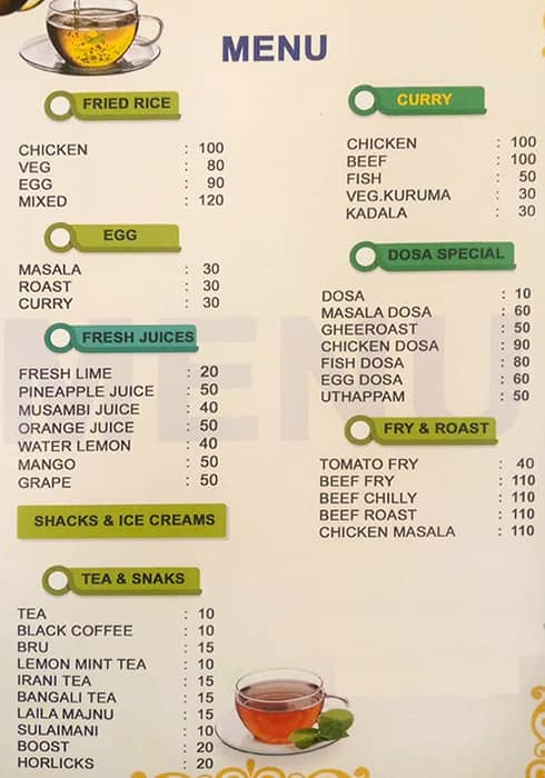 Menu of Annlin Food Court Nedumbassery Kochi