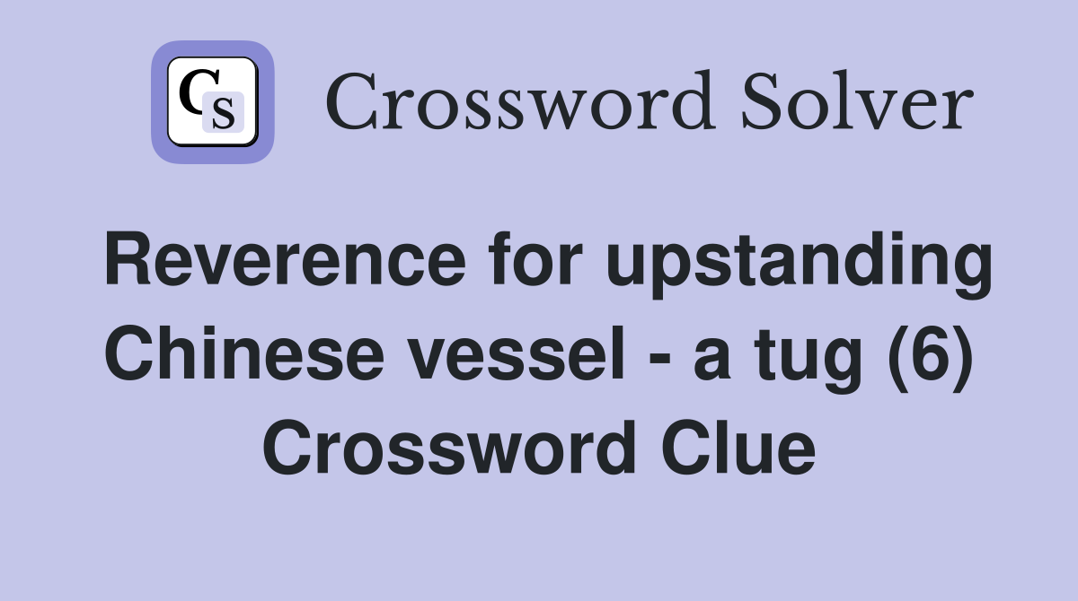 Reverence for upstanding Chinese vessel a tug (6) Crossword Clue