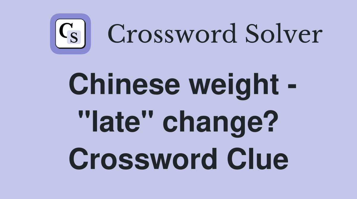 Chinese weight quot late quot change? Crossword Clue Answers Crossword Solver