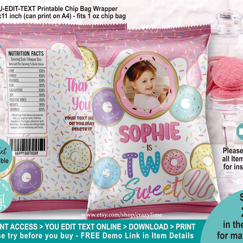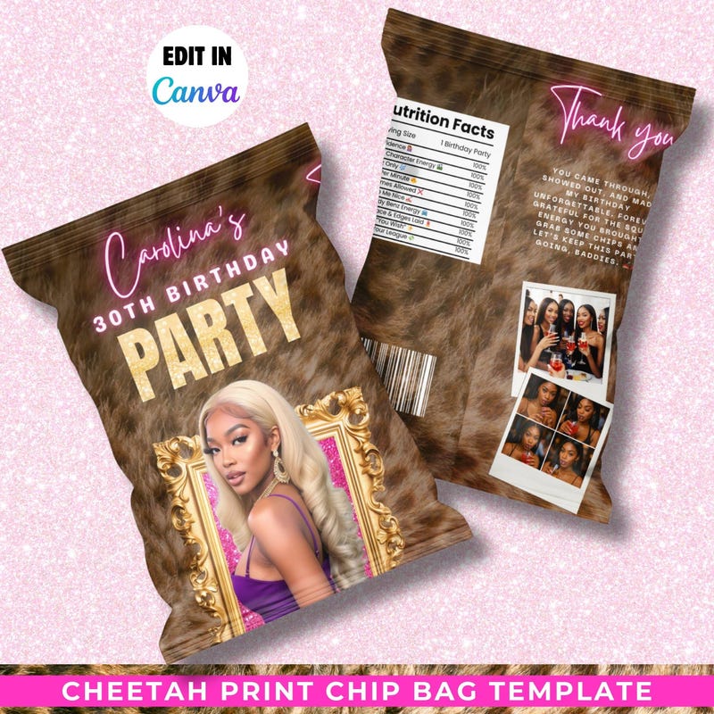 Birthday Chip Bag Template Canva Chip Bag Template Instant Download
