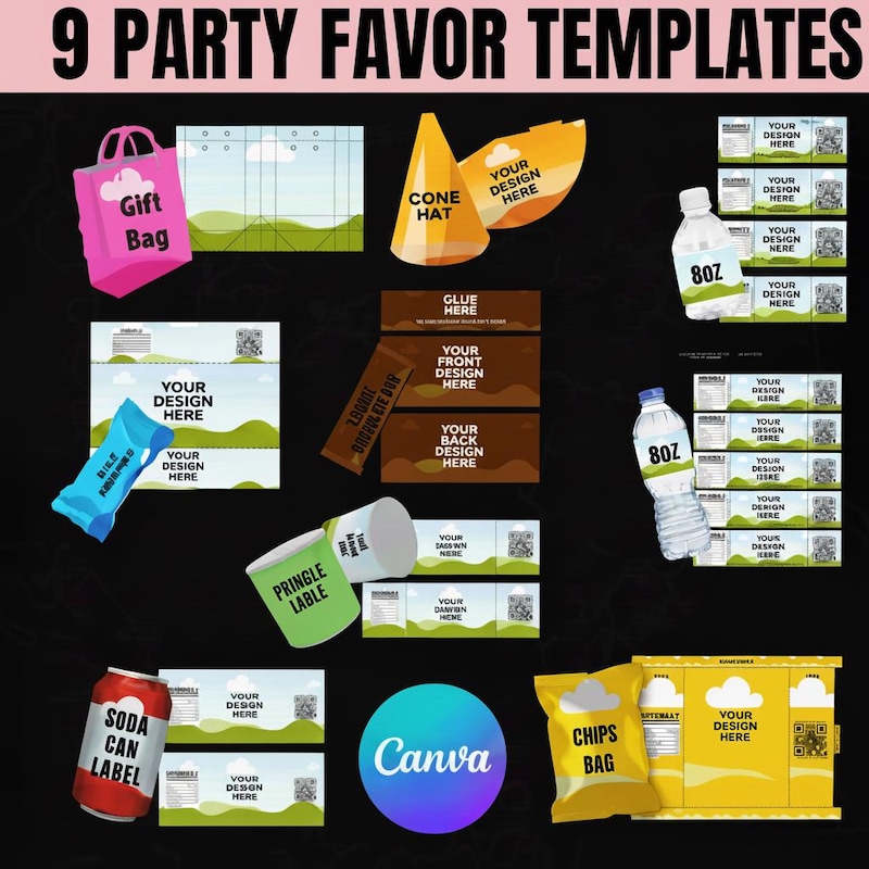 Party Favor Printable Template Chip Bag Template Canva Editable DIY
