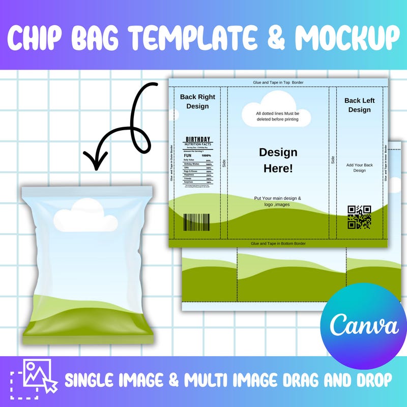 Chip Bag Template Blank Chip Bag Chip Bag Template Canva Etsy UK