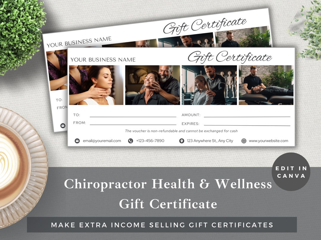 Editable Gift Certificate for Chiropractor Edit Template in Canva