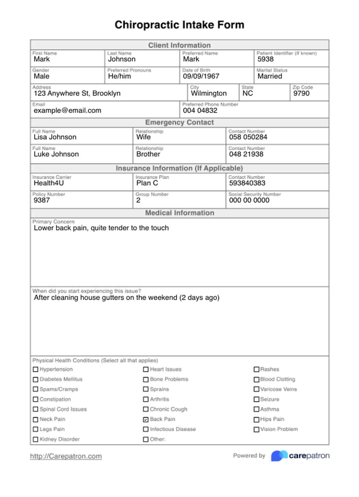 Free Chiropractic Clinic Patient Intake Form Template to Edit Online
