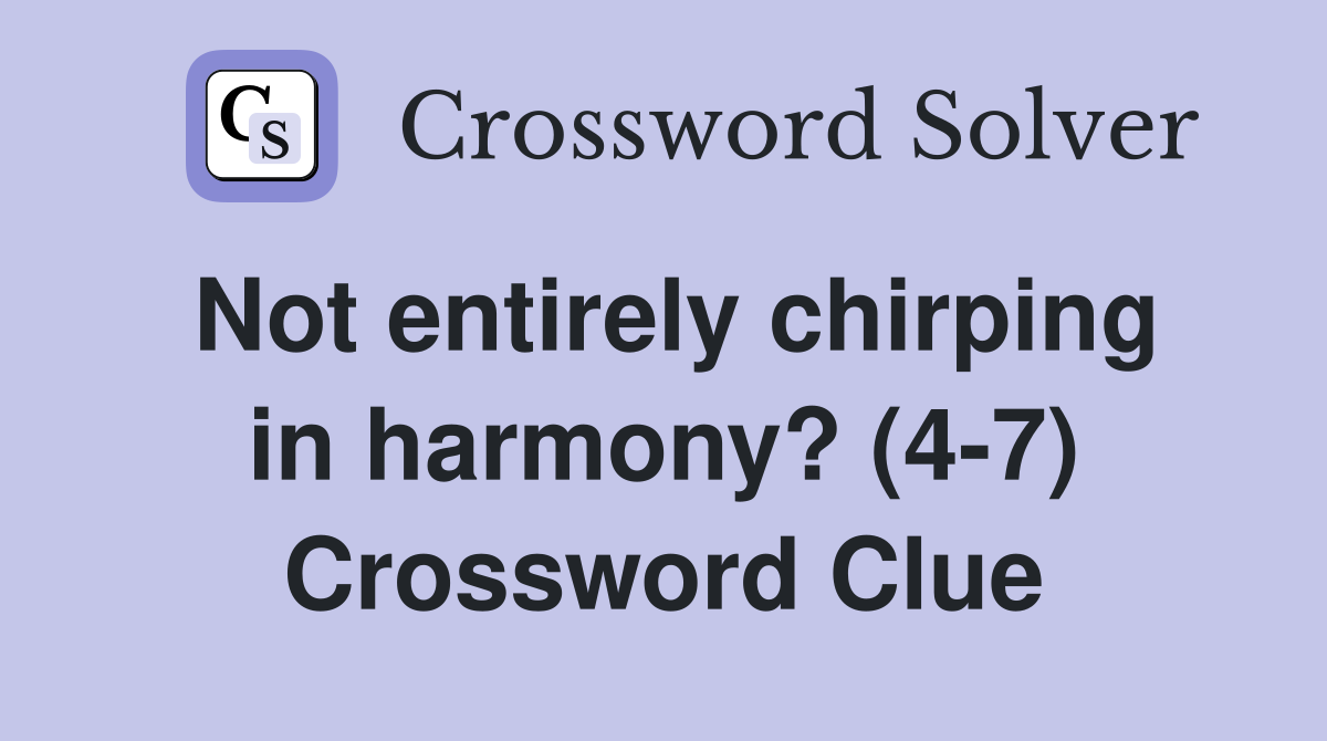 Not entirely chirping in harmony? (4 7) Crossword Clue Answers