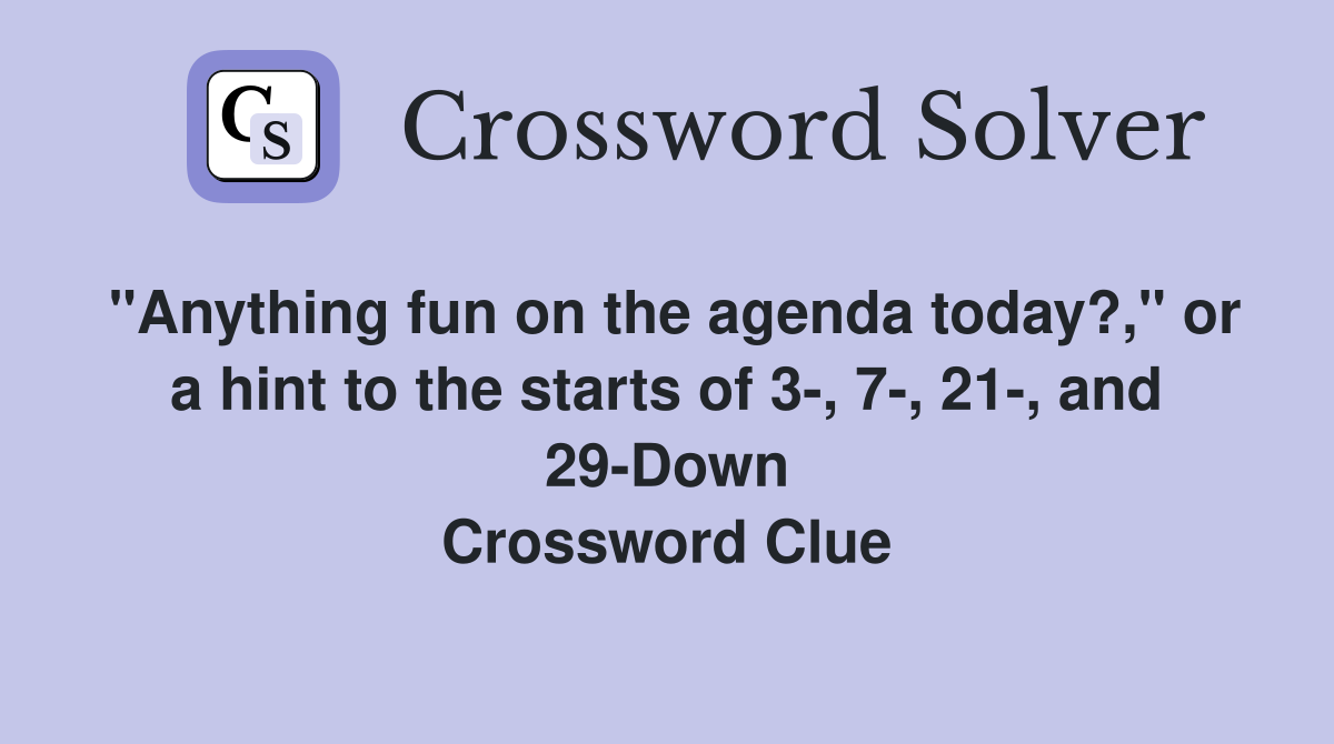 quot Anything fun on the agenda today? quot or a hint to the starts of 3 7