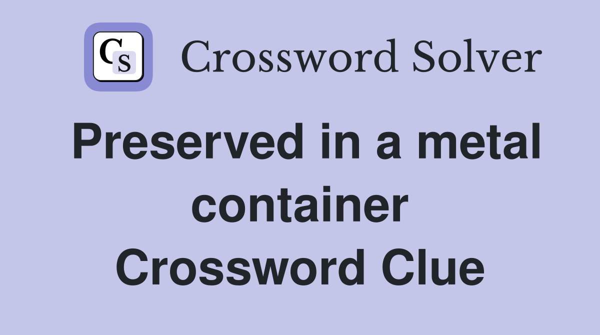 Preserved in a metal container Crossword Clue Answers Crossword Solver