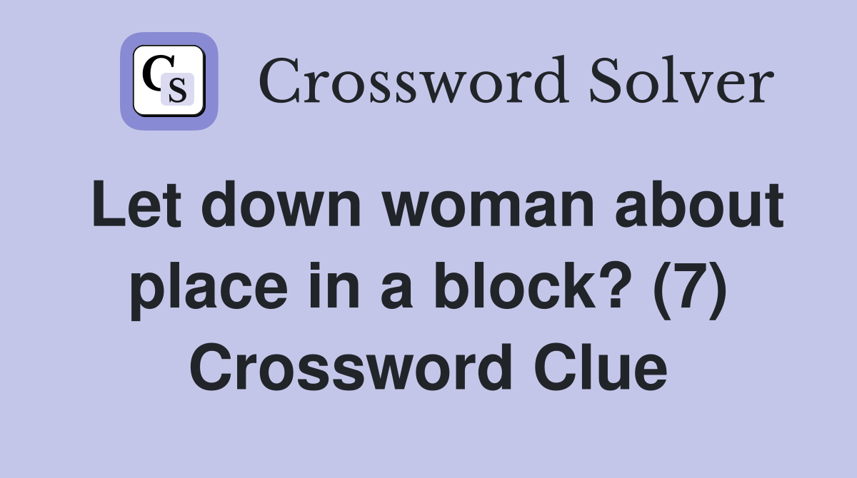 Let down woman about place in a block? (7) Crossword Clue Answers