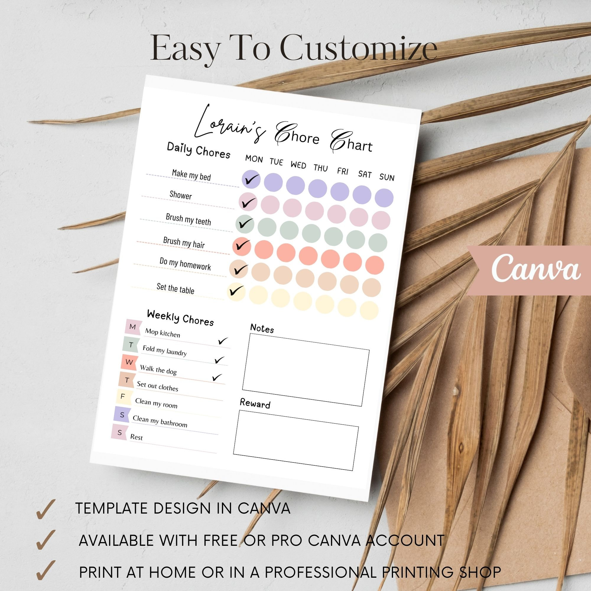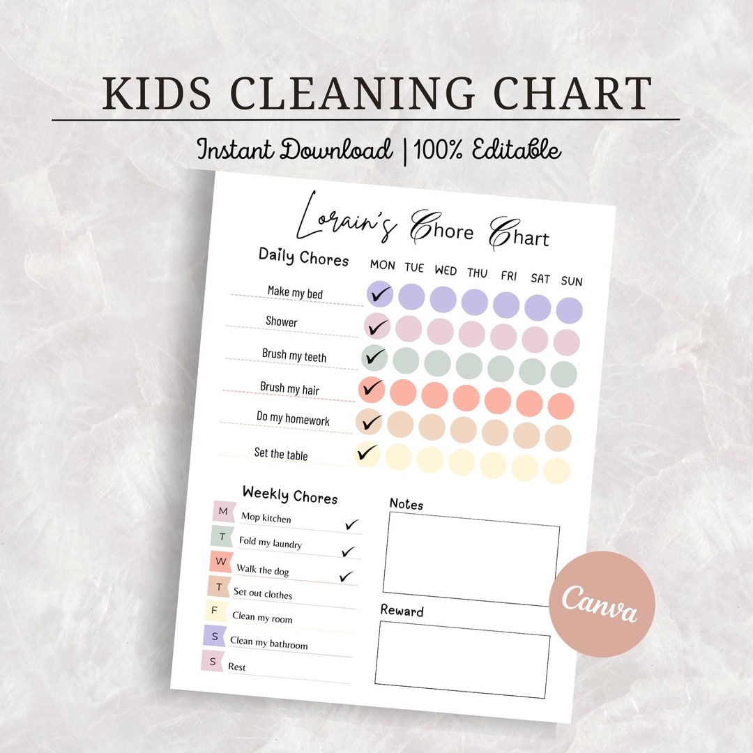 Printable Kids Chore Checklist Editable Responsibility Chart Etsy
