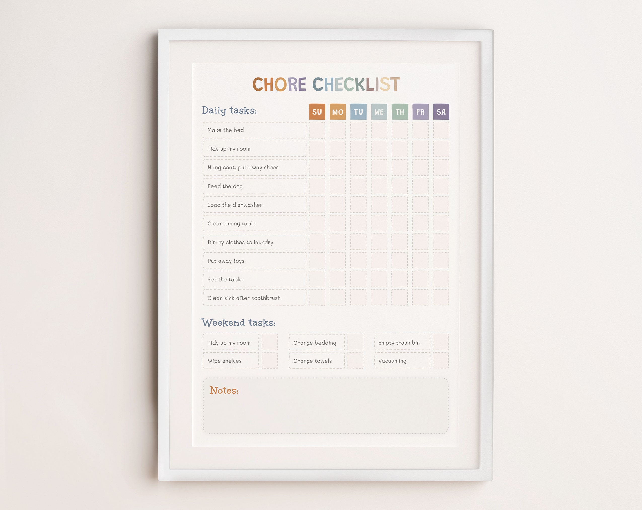Weekly Chore Checklist Template