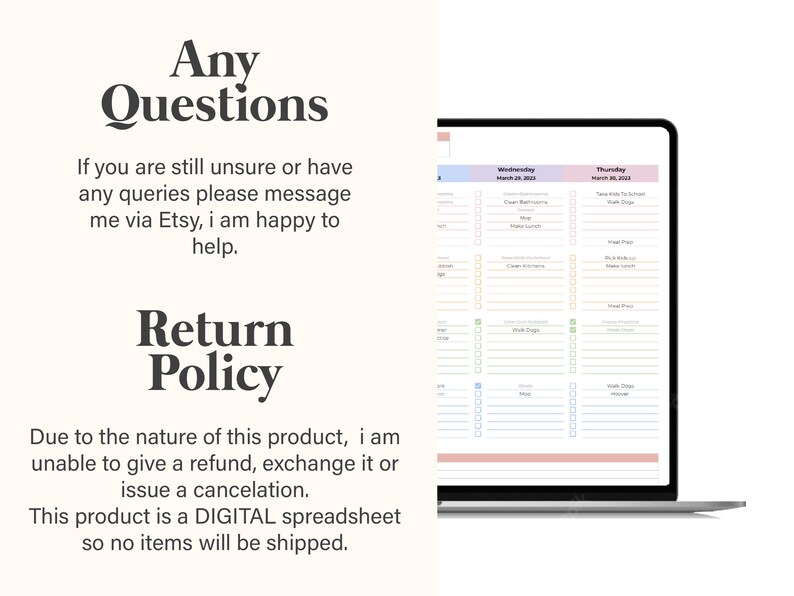 Family Chore Chart Template: Weekly Spreadsheet (google Sheets) Etsy
